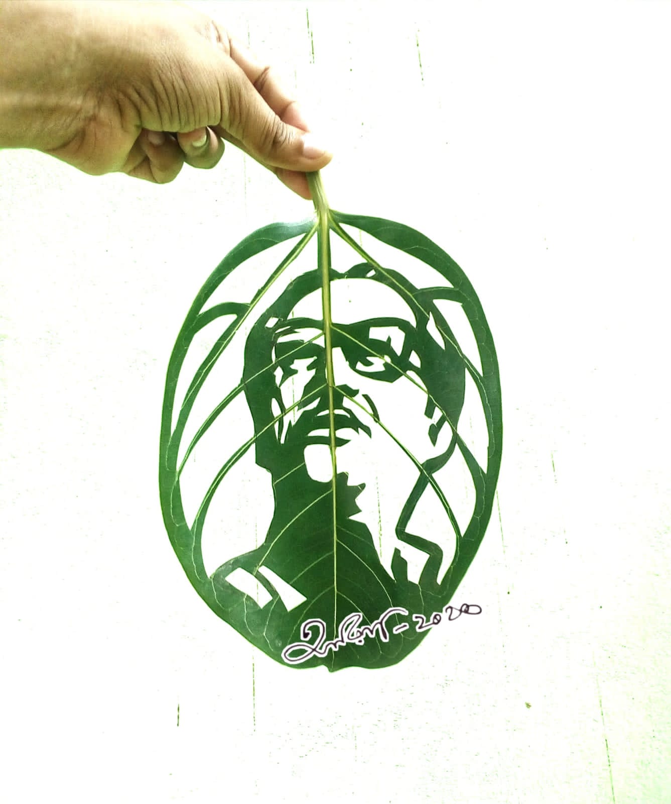 শেখ রাসেল দিবস উপলক্ষে কুতুবদিয়ার চিত্রশিল্পী আরিফের হাতে আকা গাছের পাতায় জাতির পিতা