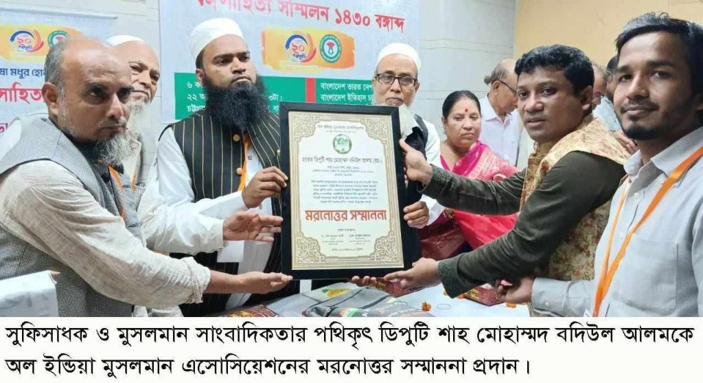 ডিপুটি শাহ মোহাম্মদ বদিউল আলমকে অল ইন্ডিয়া মুসলমান এসোসিয়েশনের মরনোত্তর সম্মাননা প্রদান