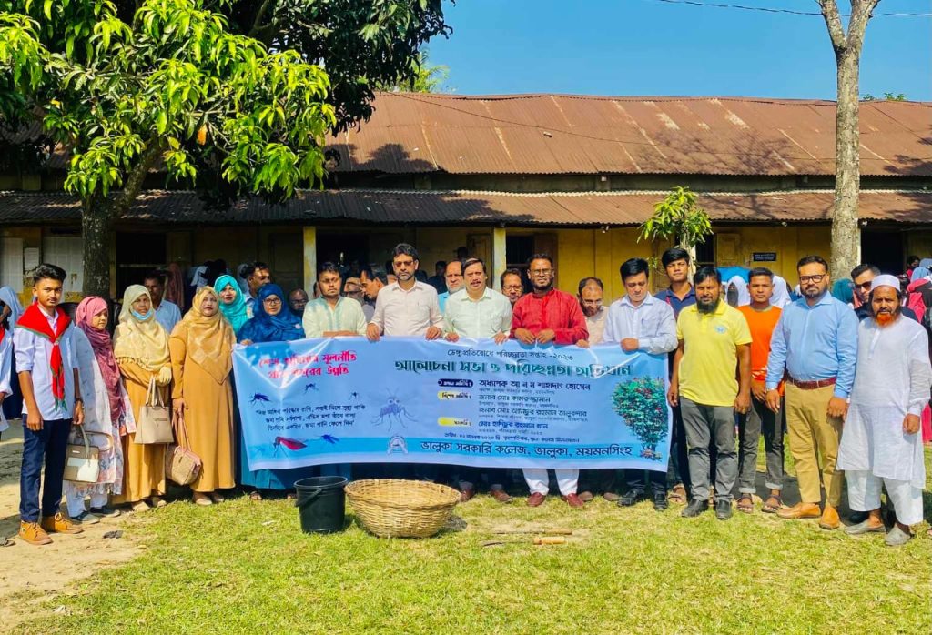 ময়মনসিংহের ভালুকায় ডেঙ্গু প্রতিরোধে পরিচ্ছন্নতা সপ্তাহ – ২০২৩ উপলক্ষে আলোচনা সভা ও পরিচ্ছন্নতা অভিযান অনুষ্ঠিত হয়েছে। ভালুকা সরকারী কলেজের আয়োজনে বৃহস্পতিবার দুপুরে কলেজ মিলনায়তনে ওই আলোচনা সভা অনুষ্ঠিত হয়।