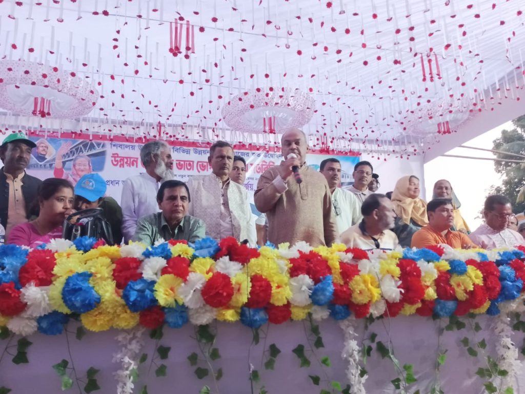 মানিকগঞ্জ জেলা শিবালয় উপজেলা শিমুলিয়া ও উলাইল ইউনিয়নের সরকারের বিভিন্ন প্রকল্পের শুভ উদ্বোধন ও ভাতা সহ সরকারের বিভিন্ন সুবিধাভোগীদের সাথে ১১ ই নভেম্বর শনিবার বিকেল ৪.০ ঘটিকার সময় দক্ষিণ শাকরাইল বাজার মাঠে এক মতবিনিময় সভা অনুষ্ঠিত হয়। সভায় প্রধান অতিথি হিসেবে উপস্থিত ছিলেন মানিকগঞ্জ -০১ আসনের সংসদ সদস্য আলহাজ্ব এ এম নাঈমুর রহমান দুর্জয় (এমপি)। বিশেষ অতিথি হিসেবে উপস্থিত ছিলেন শিবলায় উপজেলা আওয়ামীলীগের সাধারণ সম্পাদক মোঃ আব্দুল কুদ্দুস, উপজেলা পরিষদের ভাইস চেয়ারম্যান মিরাজ হোসেন লালন ফকির, মহিলা ভাইস চেয়ারম্যান রুনা আক্তার, উলাইল ইউনিয়ন আওয়ামীলীগের সভাপতি আব্দুল মজিদ, সাধারণ সম্পাদক ইঞ্জিনিয়ার মিজানুর রহমান মিন্টু সহ স্থানীয় আওয়ামীলীগ ও তার অঙ্গ সংগঠনের সকল নেতৃবৃন্দ । মতবিনিময় সভাটি সভাপতিত্ব করেন শিমুলিয়া ইউনিয়ন পরিষদের চেয়ারম্যান ও ইউনিয়ন আওয়ামীলীগ সভাপতি জহির উদ্দিন মানিক এবং সঞ্চালনায় ছিলেন শিমুলিয়া ইউনিয়ন আওয়ামীলীগের সাধারণ সম্পাদক আব্দুল মান্নান সাঈদ। প্রধান অতিথি এ সময় শিমুলিয়া ইউনিয়নে অবস্থিত যমুনাবাদ উচ্চ বিদ্যালয়ের ৫ তলা ভবন সহ দুটি ইউনিয়নের মোট ৯ টি প্রকল্পের কাজ শুভ উদ্বোধন করেন। যা বাস্তবায়ন করতে সরকারের ব্যয় হবে ১৮ কোটি টাকা। প্রধান অতিথি তার বক্তব্যে বলেন, এত উন্নয়ন বিগত দিনে কোন সরকার করেছে কিনা আপনাদের কাছে প্রশ্ন রেখে গেলাম? আমি যদি নৌকার মনোনয়ন পেয়ে পুনরায় এমপি হিসেবে নির্বাচিত হতে পারি তাহলে এ উন্নয়ন মূলক কাজ অব্যাহত রাখবো । আজ আওয়ামীলীগ সরকার দেশের বিভিন্ন শ্রেনীর মানুষের মধ্যে নানা রকম ভাতা যেযন-বয়স্ক ভাতা, প্রতিবন্ধী ভাতা, গর্ভবতী মহিলাদের জন্য ভাতা, শিক্ষার্থীদের জন্য উপবৃত্তি প্রদান, বিধবা ভাতা সহ কোটি কোটি টাকা প্রদান করছে । এ ছাড়া করোনা মহামারিতে আমরা আওয়ামীলীগ সরকার বিনামূল্যে সবাইকে টিকা দিতে সক্ষম হয়েছে , যা ইউরোপ আমেরিকার মত দেশের পক্ষে সম্ভব ছিলো না। পদ্মা সেতু মেট্রো রেল কর্ণফুলী টানেল সহ বিভিন্ন প্রকল্পের উন্নয়নমূলক কর্মকান্ড বাস্তব রূপ দিয়েছেন আমাদের মাননীয় প্রধানমন্ত্রী দেশ রত্ন জননেত্রী শেখ হাসিনা। স্বাধীনতা বিরোধী জামায়াত -বিএনপি সরকারের এ উন্নয়ন মূলক কর্মকাণ্ডকে সহজে মেনে নিতে পারছে না। তাই সরকার পতন আন্দোলনের নামে তারা মানুষ হত্যা করে নাশকতা সৃষ্টি করছে। পুলিশ, আনসার, সাংবাদিক সহ সাধারণ মানুষ কে তারা নির্বিচার হত্যা করছে। আমরা আওয়ামীলীগ নেতাকর্মীরা এদের কে যেখানেই পাব, সেখানেই প্রতিহত করব। সর্বোপরি আসন্ন জাতীয় সংসদ নির্বাচনে নৌকার মনোনয়ন যে পাবে ,আমরা সকলেই মিলে ঐক্যবদ্ধ হয়ে নৌকা জয়ের লক্ষ্যে তার হয়ে কাজ করব। মন