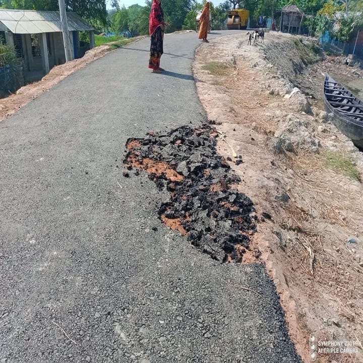 কয়রায় হাতের টানে উঠে যাচ্ছে রাস্তার পিচ ঢালাই