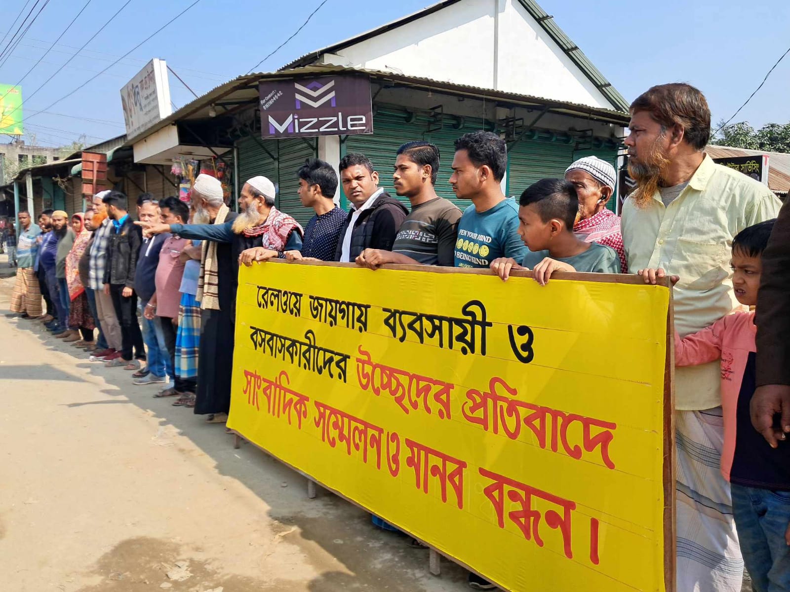 হরিজন নারীর চোখের জল আর ব্যবসায়ীদের আর্তনাদ জামালপুরে রেলওয়ের জমির গোপন লিজ বাতিল চেয়ে মানববন্ধন