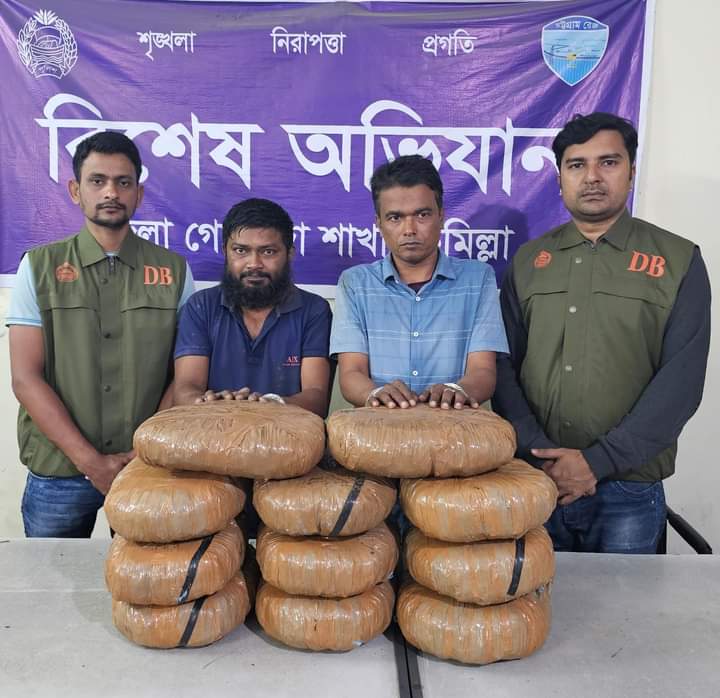 কুমিল্লা জেলা গোয়েন্দা শাখা (ডিবি), কর্তৃক ২২ কেজি গাঁজা সহ ২ মাদক ব্যবসায়ী গ্রেফতার