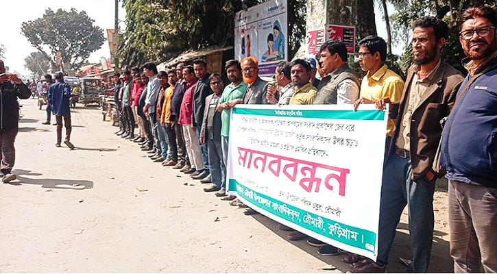 কুড়িগ্রামে চেয়ারম্যানের বিরুদ্ধে সাংবাদিকদের মানববন্ধন