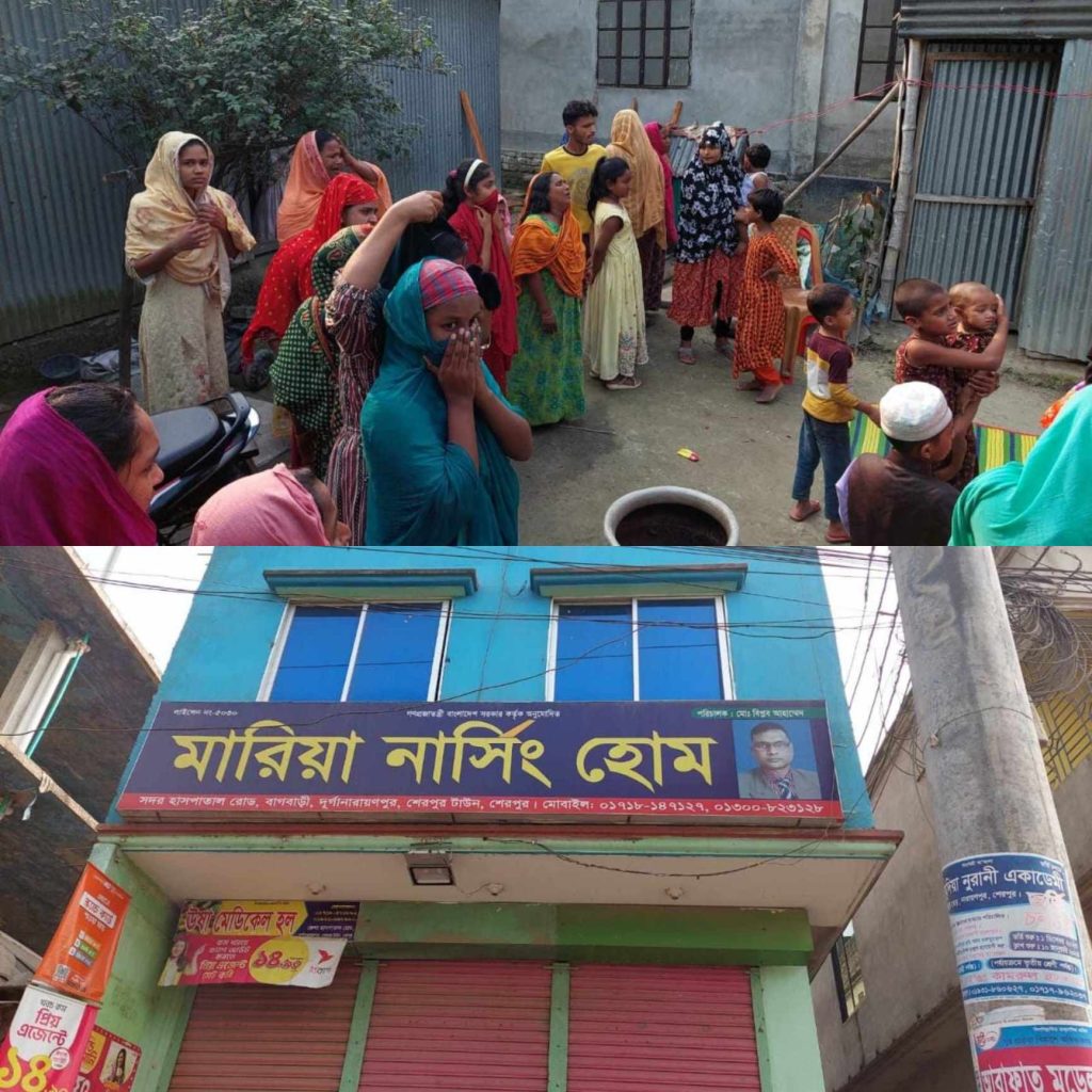শেরপুরে পুত্র সন্তানের আশায় একটি নার্সিং হোমে নিয়ে গর্ভপাতের নামে পরিকল্পিতভাবে ৬ মাসের গর্ভবতী স্ত্রীকে হত্যার অভিযোগ করেছে স্বজনরা। এঘটনায় নার্সিংহোমের মালিক বিপ্লব আহমেদ ও তার স্ত্রী নাজনীনকে আটক করেছে পুলিশ। এমন নির্মম ঘটনার বিচার দাবী করেছেন স্থানীয়রা।