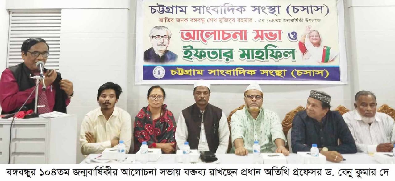 রোববার (১৭ মার্চ) সন্ধ্যায় চট্টগ্রাম একাডেমি মিলনায়তনে এই ইফতার মাহফিল অনুষ্ঠিত হয়। ইফতার মাহফিলে ১৯৭৫ সালের ১৫ আগস্ট জাতির পিতা বঙ্গবন্ধু শেখ মুজিবুর রহমান এবং তার পরিবারের নিহত সদস্যদের রুহের মাগফেরাত কামনা করে দোয়া ও বিশেষ মোনাজাত করা হয়। মোনাজাতে দেশ এবং জাতির কল্যাণ ও অগ্রগতি কামনা করা হয়। চসাস’র সভাপতি সৈয়দ দিদার আশরাফী’র সভাপতিত্বে ও সাধারণ সম্পাদক ওসমান এহতেসাম’র সঞ্চালনায় আলোচনা সভায় প্রধান অতিথির বক্তব্য রাখেন চট্টগ্রাম বিশ্ববিদ্যালয়ের উপ—উপাচার্য প্রফেসর ড. বেনু কুমার দে। উদ্বোধক ছিলেন সংস্থার সিনিয়র সহ—সভাপতি ও মোহনা টেলিভিশনের চট্টগ্রাম বিভাগীয় ব্যুরো প্রধান আলী আহমেদ শাহিন। প্রধান বক্তা ছিলেন চট্টগ্রাম মহানগর আওয়ামী লীগের সাংগঠনিক সম্পাদক ও কাউন্সিলর চৌধুরী হাসান মাহমুদ হাসনী। মূখ্য আলোচক ছিলেন চট্টগ্রাম সাংবাদিক ইউনিয়নের প্রাক্তন সভাপতি নাজিম উদ্দিন শ্যামল। বিশেষ অতিথি ছিলেন বীর গেরিলা মুক্তিযোদ্ধা ফজল আহমদ, চট্টগ্রাম দক্ষিণ জেলা মহিলা আওয়ামী লীগের দপ্তর সম্পাদক সঞ্চিতা বড়ুয়া, ইসলামিক চিন্তাবিদ মোহাম্মদ হোসেন, ১৪ দলীয় জোট নেতা স্বপন সেন, জার নিউজের সম্পাদক মোহাম্মদ জিন্নাত আলী, সংগঠনের যুগ্ম সাধারণ সম্পাদক মোহাম্মদ ওমর ফারুক, সাংগঠনিক সম্পাদক মোঃ রিদুয়ান, প্রণবরাজ বড়ুয়া, ভাস্কর ডি কে দাশ মামুন, মোহাম্মদ তৌকী, সৈয়দ শিবলী সাদেক কফিল, প্রচার সম্পাদক গাজী গোফরান, আনিসুর রহমান, সাংবাদিক রোজি চৌধুরী, ডা. সুকুমার সেন, ইসমাইল কোম্পানী, তুষার দাশ, ফারজানা কবির রুশমী, সংস্কৃতিক সংগঠক দিলীপ সেনগুপ্ত প্রমুখ। জাতির পিতা বঙ্গবন্ধু শেখ মুজিবুর রহমানের কর্মময় জীবনের বিভিন্ন দিক তুলে ধরে বক্তারা বলেন, বঙ্গবন্ধুর স্বপ্নের সোনার বাংলা বিনির্মাণে প্রধানমন্ত্রীর গৃহীত কার্যক্রম বাস্তবায়নে সবাইকে ঐক্যবদ্ধ হয়ে কাজ করতে হবে।